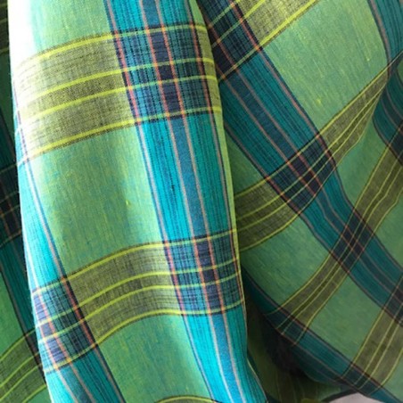 Ce tissu écossais en lin tissé offre une élégance intemporelle, idéale pour des créations à la fois raffinées et confortables. Son motif classique et ses couleurs chaleureuses en font un choix parfait pour la confection de chemisiers, d’étoles légères, de robes estivales ou de paréos.